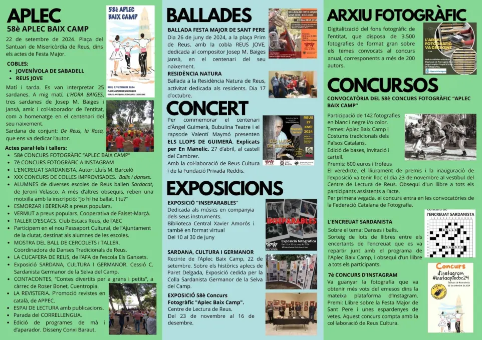 Destaca com sempre, l’Aplec Baix Camp, en la seva 57ena. edició, que, a més de les